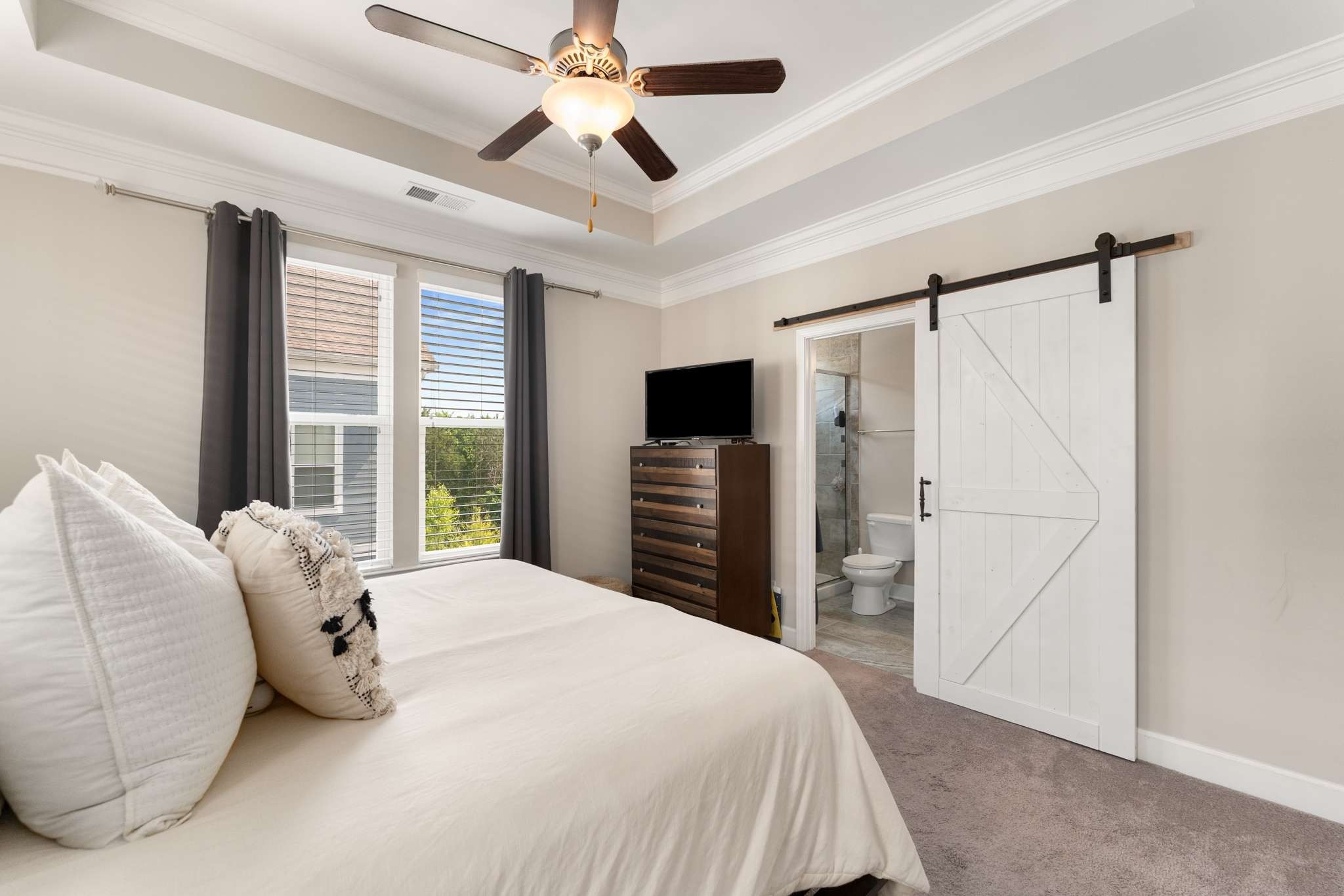 (Video Tour: https://bit.ly/104burkittcommons) Perfectly-placed end-unit right on Burkitt Commons Avenue with plenty of parking in excellent Burkitt Commons! Check out this conveniently laid out townhome with private bathrooms for each bedroom and a wide-open and well-lit living space on the second floor. You'll notice the 9' ceilings and the crown molding throughout the home. The convenience of this unit can't be overstated and is a short walk to Tito’s Mexican Restaurant, Steam Boys, Barrels & Brews, Monamie Coffee, Ugadi Indian Grill, and the other establishments Burkitt Commons has to offer. This unit boasts unique light fixtures, a sliding barndoor in the primary bedroom, custom Elfa closet and much more. The HOA covers everything on the exterior of the home including the roof, and the unit boasts a tankless water heater, both features adding to an stress-free living experience. Come see this unique unit for yourself! *Rates as low as 4.75% available with preferred lender. Reach out to the listing agent for details.*